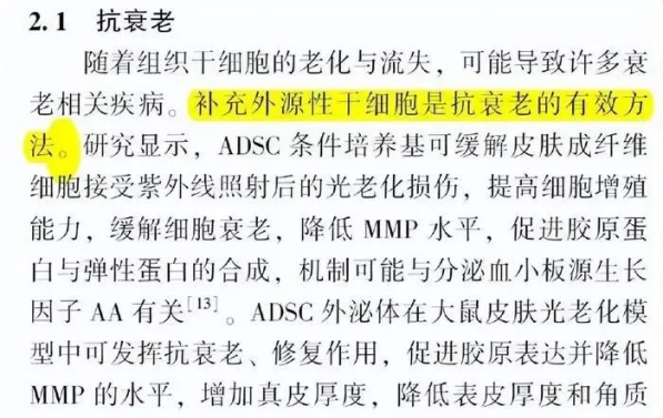 我國(guó)《協(xié)和醫(yī)學(xué)雜志》發(fā)布的《間充質(zhì)干細(xì)胞在整形美容領(lǐng)域的應(yīng)用》[6]提到,“隨著組織干細(xì)胞的老化與流失,可能導(dǎo)致許多衰老相關(guān)疾病。補(bǔ)充外源性干細(xì)胞是抗衰老的有效方法。”