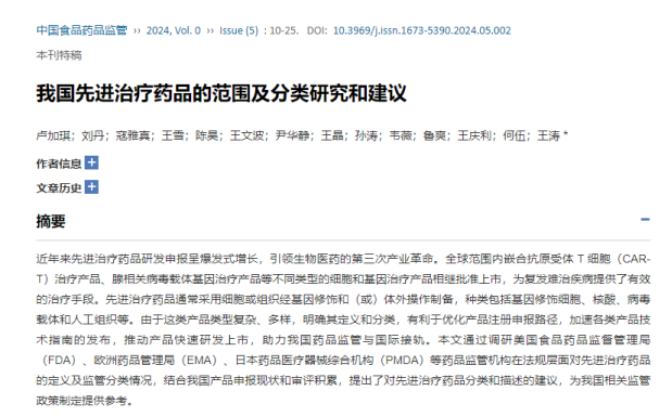 【參考資料】1.盧加琪,劉丹,寇雅真,王雪,陳昊,王文波,尹華靜,王晶,孫濤,韋薇,魯爽,王慶利,何伍,王濤*.我國(guó)先進(jìn)治療藥品的范圍及分類研究和建議[J].中國(guó)食品藥品監(jiān)管,2024(5):10-26.