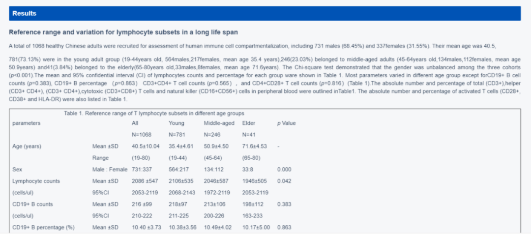 一篇發表在行業專業期刊《Aging》上題為《Aging of immune system: Immune signature from peripheral blood lymphocyte subsets in 1068 healthy adults》的研究報告,分析了1068名健康人外周血淋巴細胞及其亞群隨著年齡變化因素數量和比例發生的改變。