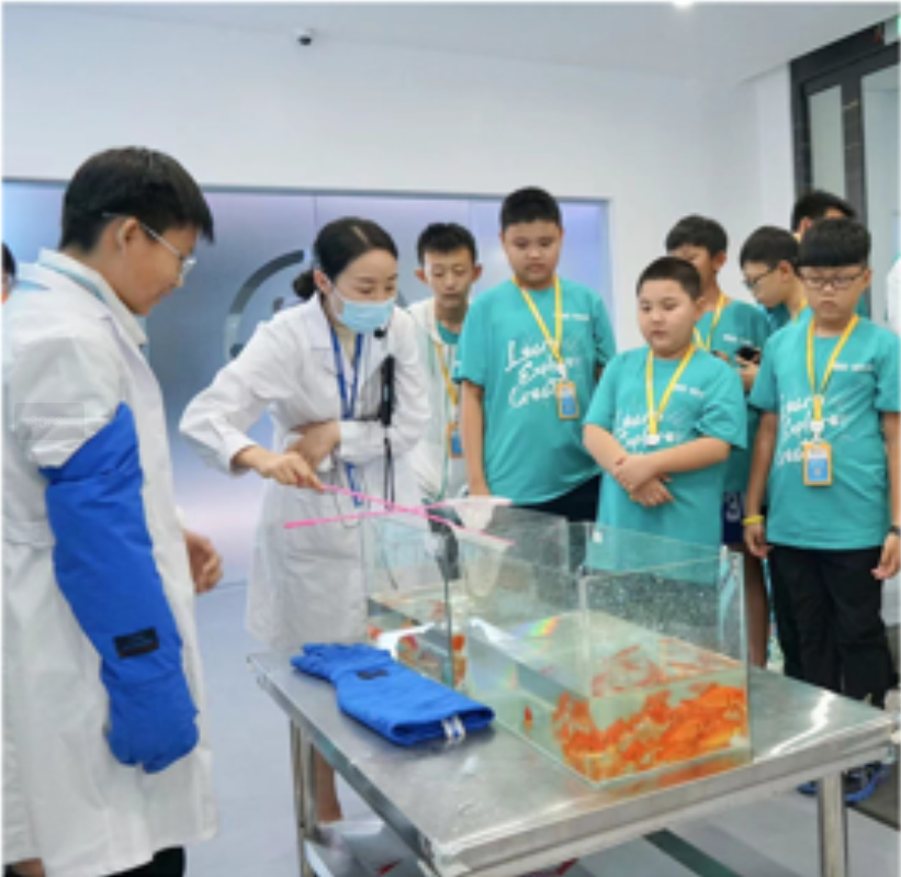 孩子們遨游其中,通過3D裸眼沉浸觀影,身臨其境感受細胞的神秘世界;以動畫和飛屏互動的形式了解細胞前沿科技力量;觀摩5G智能全自動化深低溫齊魯細胞庫,展示100%無人值守自動化細胞存儲技術(shù)。