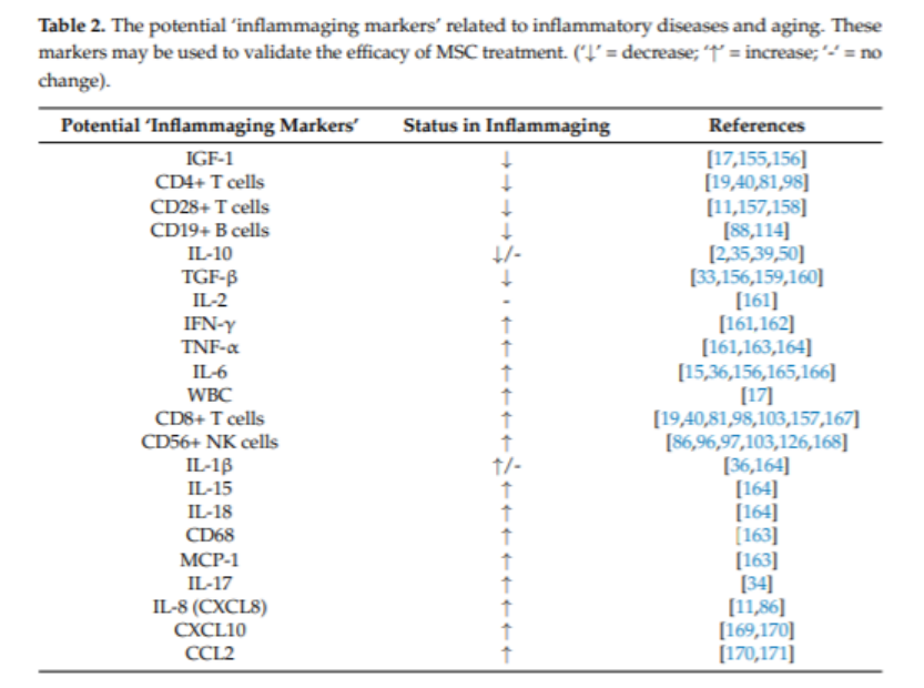 顯示了與炎癥性疾病和衰老相關(guān)的潛在“炎癥標(biāo)志物”,這些標(biāo)志物可用于驗證間充質(zhì)干細(xì)胞針對其的潛力[1]。