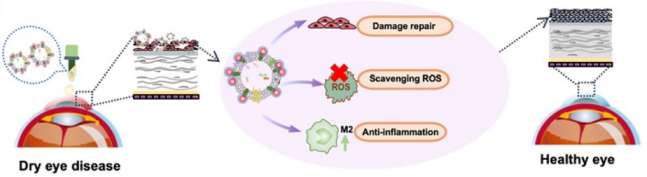 圖二:工程化MSC- EXOs通過修復眼表損傷,清除活性氧,減少炎癥來緩解DED