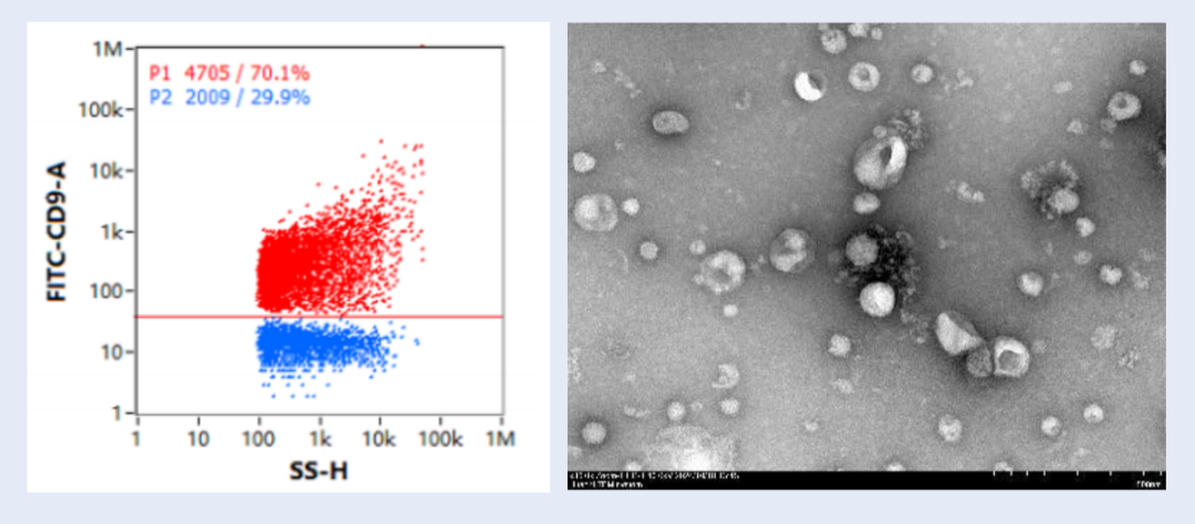 外泌體凍干粉陽性率表征及透射電鏡圖