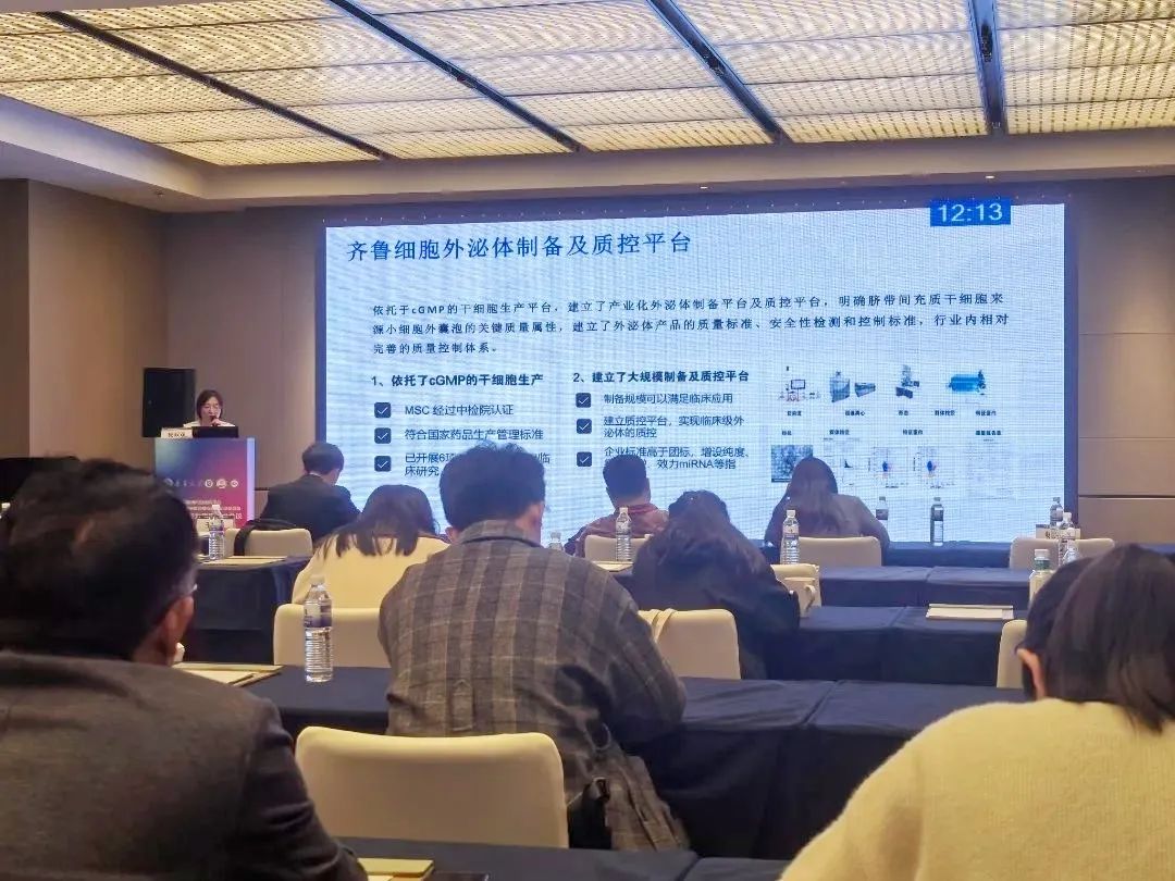 山東省齊魯細胞治療工程技術有限公司(以下簡稱“齊魯細胞”)楊雙雙博士代表公司,受邀出席此次會議,并在會上進行了主題為《MSC源外泌體工業化制備、應用及滴眼劑開發早期探索》的報告。