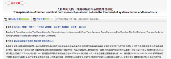 解放軍成都軍區(qū)昆明總醫(yī)院細胞生物治療中心在《中國組織工程研究》發(fā)表的《人臍帶間充質干細胞移植治療系統(tǒng)性紅斑狼瘡》臨床研究指出,系統(tǒng)性紅斑狼瘡是一種以多器官或多系統(tǒng)病變和血清中出現多種自身抗體為特征的自身免疫性疾病,目前缺乏有效的治療方案,而理論上間充質干細胞可用于應對系統(tǒng)性紅斑狼瘡。
