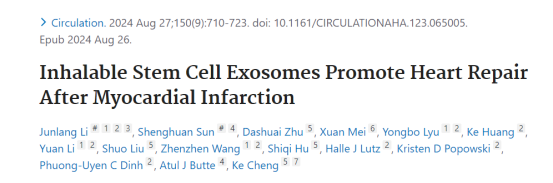 關于外泌體霧化應對心肌梗死方向的研究,加州大學舊金山分校等研究團隊于《Circulation》發(fā)表的一篇相關研究。團隊研發(fā)的干細胞衍生的外泌體霧化療法,創(chuàng)造性地利用霧化器將干細胞外泌體輸送至肺部,經(jīng)肺泡 - 毛細血管屏障進入循環(huán)系統(tǒng),最終精準抵達缺血心臟。同時,安全性評估表明,該療法對肺、脾、肝、腎等多器官均無毒性。這項研究為心肌梗死臨床治療筑牢基礎,未來有望成為患者新的 “生命守護者”。