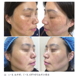 選2019年3月-2021年12月在筆者醫(yī)院接受參加本次研究的89例黃褐斑受試者,隨機(jī)分為實(shí)驗(yàn)組(AOPT+EVS組)和對(duì)照組(AOPT組),過(guò)程24周。兩組PGA評(píng)分均有改善,實(shí)驗(yàn)組改善率97.7%,對(duì)照組改善率93.3%;受試者滿意度實(shí)驗(yàn)組88.6%,高于對(duì)照組的80.0%。新型強(qiáng)脈沖光應(yīng)對(duì)黃褐斑效果確切,術(shù)后配合EVS外用可以在一定程度上提高應(yīng)用效果。