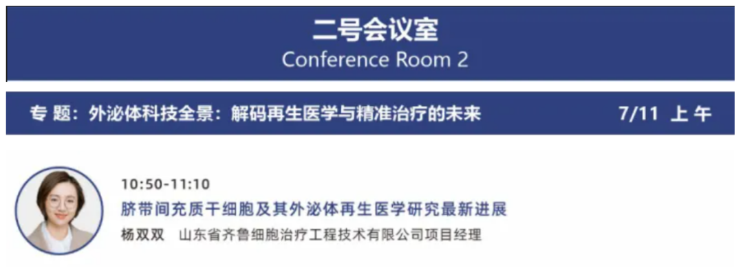 此次展會匯聚了國內外眾多醫療旅游領域的精英企業和專業人士,共同探討跨境醫療行業的發展趨勢和前景。會中,我公司研發團隊核心成員楊雙雙博士將于7月11日上午在展館2號會議室,進行題為《臍帶間充質干細胞及其外泌體再生醫學研究最新進展》的發言分享,屆時期待與您的現場交流。