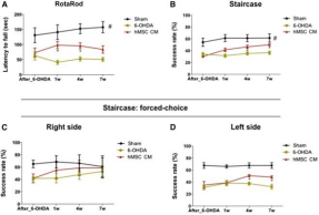 PD是一種以黑質紋狀體多巴胺能神經元進行性丟失為特征的進行性神經退行性疾病。目前常用的左旋多巴類藥物,長期使用會出現“異動癥”,且無法阻止神經元繼續死亡。將間充質干細胞外泌體注射到PD大鼠模型的黑質和紋狀體中,可改善動物的運動能力和組織學癥狀。在一項正在進行的臨床試驗中,Zali等人擬評估轉染miR-124的BM-MSC-Exos對診斷為急性缺血性卒中患者的療效。在這項1/2期試驗中,5名年齡在40 ~ 80歲的參與者在卒中后1個月在缺血區域接受了1次200mg劑量的轉染miR-124的總蛋白BM-MSC-Exos。治療后將對參與者的安全性進行12個月隨訪,并將其作為主要終點。潛在的療效將通過在治療后的前12個月內操縱的Rankin量表的改善來衡量,并通過測量AIS患者的殘疾程度(從0到6分)來衡量。