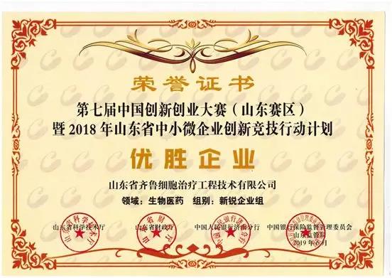 治療公司于2018年7月份參加第七屆中國(guó)創(chuàng)新創(chuàng)業(yè)大賽(山東賽區(qū))暨2018年山東省中小微企業(yè)創(chuàng)新競(jìng)技行動(dòng)計(jì)劃,經(jīng)過初審、選拔及現(xiàn)場(chǎng)答辯,最終成為“生物醫(yī)藥領(lǐng)域優(yōu)勝企業(yè)”。