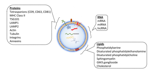 外泌體是在細胞內形成的微小囊狀結構,由雙層卵磷脂膜包裹,直徑約30-150nm。作為一種活細胞分泌的亞細胞成分,外泌體中含有細胞特異的蛋白、脂質和核酸,能作為信號分子傳遞給其他細胞從而改變其他細胞的功能,起到調節細胞狀態與功能的作用。