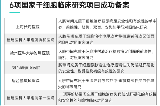 以我們齊魯細胞為例,現階段通過了6項國家級干細胞臨床研究項目備案并參與了1項“十四五”專項科研項目。