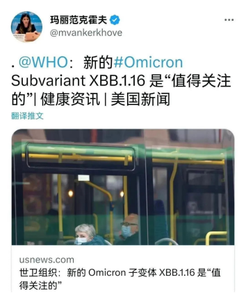 世衛(wèi)組織新冠技術(shù)負(fù)責(zé)人瑪麗亞·范·科克霍夫博士表示,XBB.1.16在刺突蛋白中有一個(gè)額外的突變,使得其傳染性提高,并有致病性提高的可能性。提醒各國需對XBB.1.16保持高度警惕,尤其是老年人群、患有基礎(chǔ)疾病及合并呼吸系統(tǒng)疾病的患者人群。