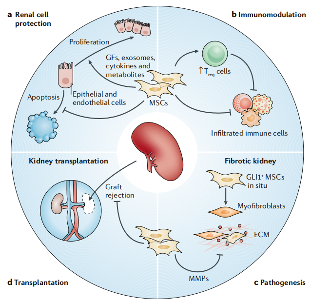 [1]Shi Y, Wang Y, Li Q, et al. Immunoregulatory mechanisms of mesenchymal stem and stromal cells in inflammatory diseases. Nat Rev Nephrol. 2018;14(8):493-507.
