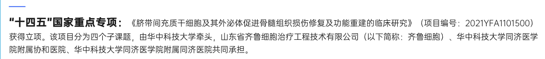 對于該項目的合作,朱月永主任表示,齊魯細胞生產的臍帶間充質干細胞,是通過了中檢院嚴格復查的。并且齊魯細胞與多家臨床機構聯合開展了6項國家干細胞項目,還有一項“十四五”國家重點專項項目,與齊魯細胞的合作,是經過綜合考量的。