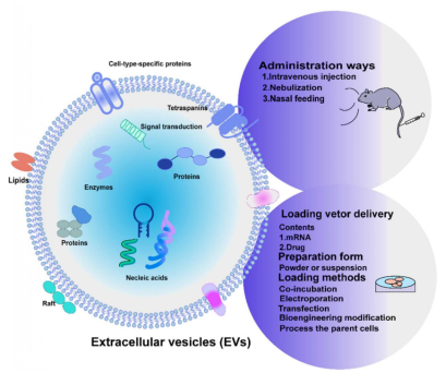 EVs是由各種細胞分泌的磷脂雙分子層組成的膜性小囊泡,其中含有蛋白質(zhì)、核酸和脂質(zhì)。