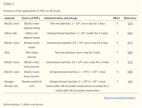 [1] Sun, L., Sha, J., Meng, C., & Zhu, D. (2020). Mesenchymal Stem Cell-Based Therapy for Allergic Rhinitis. Stem cells international, 2020, 2367524.