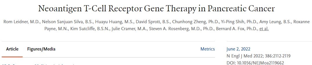 1. Leidner R, Silva NS, Huang H, et al. Neoantigen T-cell receptor gene therapyin pancreatic cancer. N Engl J Med 2022;386:2112-9.