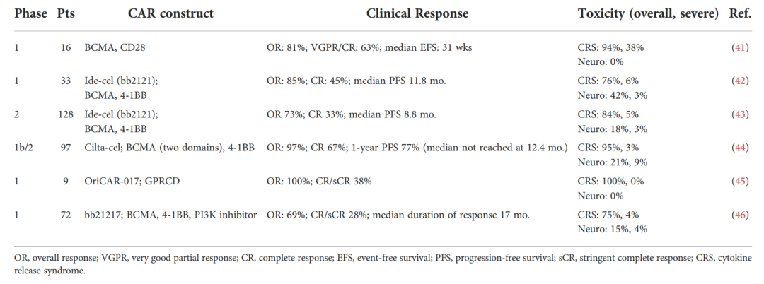 △已發表和進行中CAR - T細胞在骨髓瘤中的臨床試驗[3]