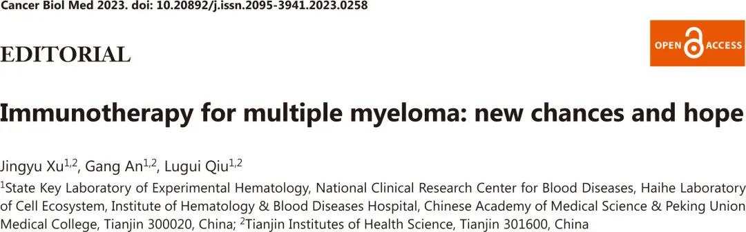[5]Xu J, An G, Qiu L. Immunotherapy for multiple myeloma:new chances and hope. Cancer Biol Med. 2023; x: xx-xx. doi: 10.20892/j.issn.2095-3941.2023.0258