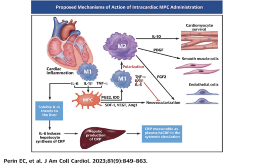 臨床試驗結果顯示,接受了MPCs應用的心力衰竭患者在前12個月內左心室肌肉收縮能力一定程度的增強(通過左心室射血分數來衡量),在平均30個月的隨訪中,心力衰竭患者的心血管死亡、心臟病發作或中風風險降低,而那些炎癥加重的心力衰竭患者的風險降低效果更明顯。