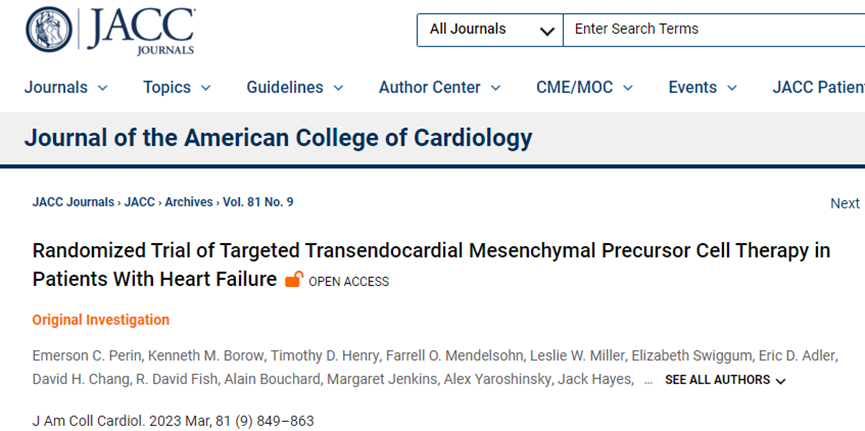 《美國心臟病學會雜志》(JACC)中的一篇文章中介紹道,美國德克薩斯心臟研究所研究人員利用間充質干細胞注射治療慢性心力衰竭的臨床新進展(DREAM-HF)。