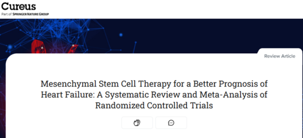 Cureus雜志發表了一研究成果[2],美國研究人員采用系統回顧和薈萃分析來評估間充質干細胞對心力衰竭患者預后的影響。
