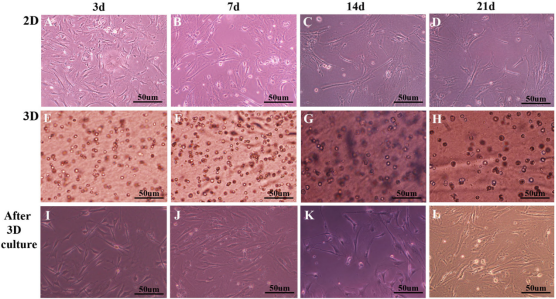 △圖4 2D和3D培養條件下的ADMSCs形態