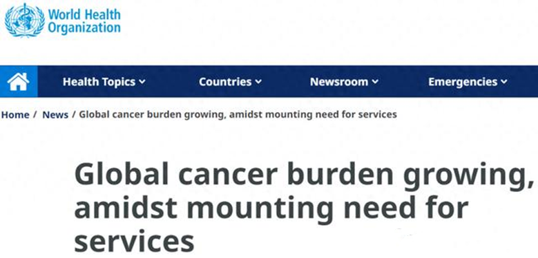 2024年,世界衛(wèi)生組織下屬機(jī)構(gòu)——國際癌癥研究機(jī)構(gòu)(IARC),最新發(fā)布的《全球癌癥負(fù)擔(dān)最新統(tǒng)計數(shù)據(jù)(基于2022年的數(shù)據(jù))》:2022年,全球估計有2000萬新發(fā)癌癥病例,約970萬人死于癌癥。