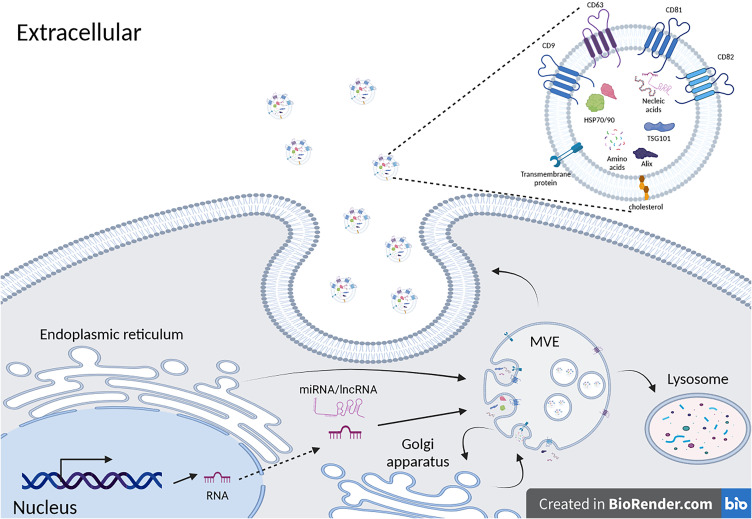 外泌體是一種由內(nèi)體途徑形成、直徑在30-150nm的腔內(nèi)囊泡,在多種體液(如:血漿、尿液、精液、唾液、支氣管液、腦脊液、母乳、血清、羊水、滑液、眼淚、淋巴、膽汁和胃酸)中均可被檢測(cè)的到[2]。