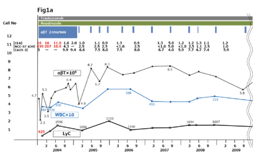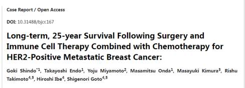 《British Journal of Cancer Research》中刊登過一項病例,一名晚期轉移性乳腺癌的患者,在經過自身免疫細胞應用聯合化療的臨床方案后,生存期成功達到了25年+。
