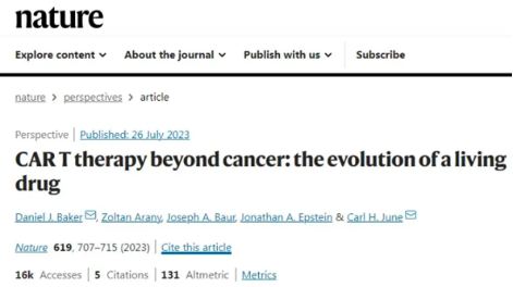此前,CAR-T細胞療法創(chuàng)始人之一的Carl June及其同事在《nature》[1]雜志上討論了CAR-T免疫細胞的潛力。