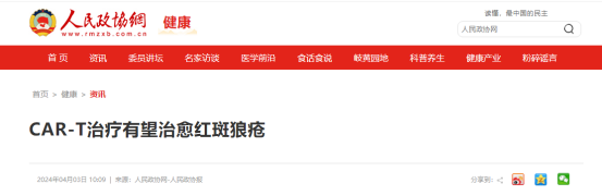 3.人民政協CAR-T治療有望治愈紅斑狼瘡;
