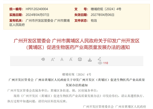 2.廣州開發區(黃埔區)促進生物醫藥產業高質量發展辦法;
