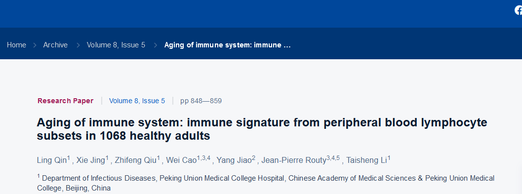 北京協和醫院的研究人員在行業專業期刊《Aging》上發表的研究報告。